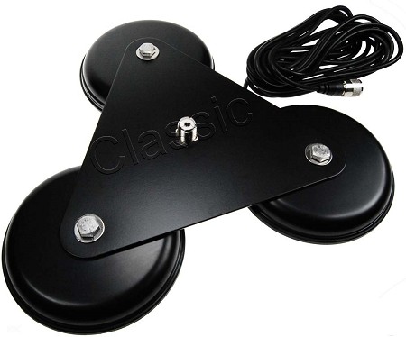 Dieser robuste Magnetfuß besteht aus 3 gekoppelten starken Magneten. Der Fuß wird mit 3 Gummiabdeckungen geliefert, um die Magnete zu schützen und Kratzer auf der Oberfläche zu vermeiden. Sie können die SO 239 Flansch-Buchse einfach selbst montieren. Es ist leicht zugänglich und auf Wunsch einfach zu ersetzen.