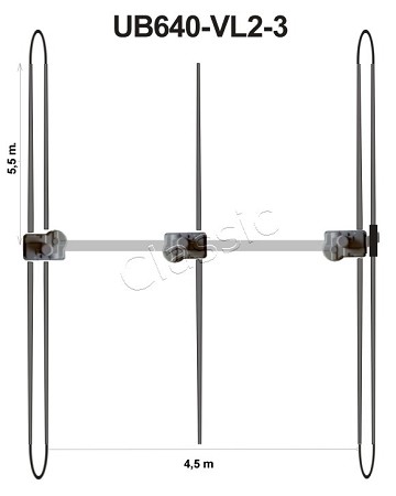 Gain : 6,1 dBd | 30-40 m.: 4,2 dBd