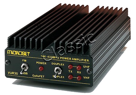 Der Microset VUR-30 ist einen 2 m/70 cm Full-Duplex 30 W Leistungsverstärker mit integriertem Empfangsvorverstärker. Umschaltung durch HF-VOX.