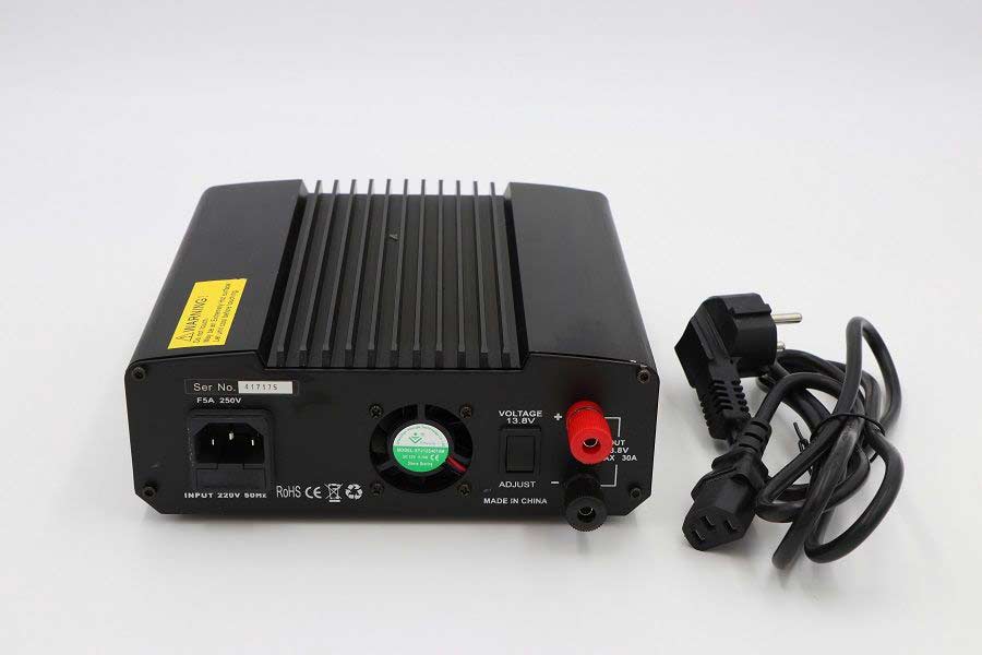 | Ausgangsspannung | : | 9-15 VDC, regelbar | 13,8 VDC Festspannung durch Festspannungsschalter auf der Rückseite |