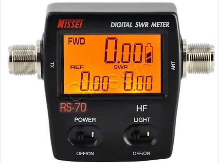 NISSEI RS-70 ist ein sehr kompaktes, digitales SWR/Power Messgerät, das FWD, REF, SWR und Batterie/Akku Status auf einen Blick anzeigt!