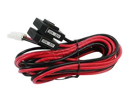 Jede Ader ist einzeln mit einer 20 A Kabelsicherung abgesichert. Kabel mit 4 mm2 Querschnitt, anderes Ende offen.