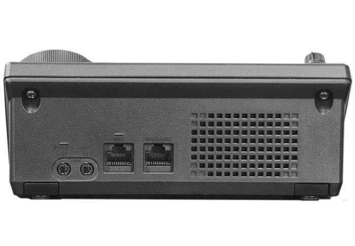 Auf der Rückseite des Bedienteils finden zahlreiche Buchsen zum Anschluss optionalen Zubehörs Platz. Außerdem befindet sich hier ein Lautsprecher.