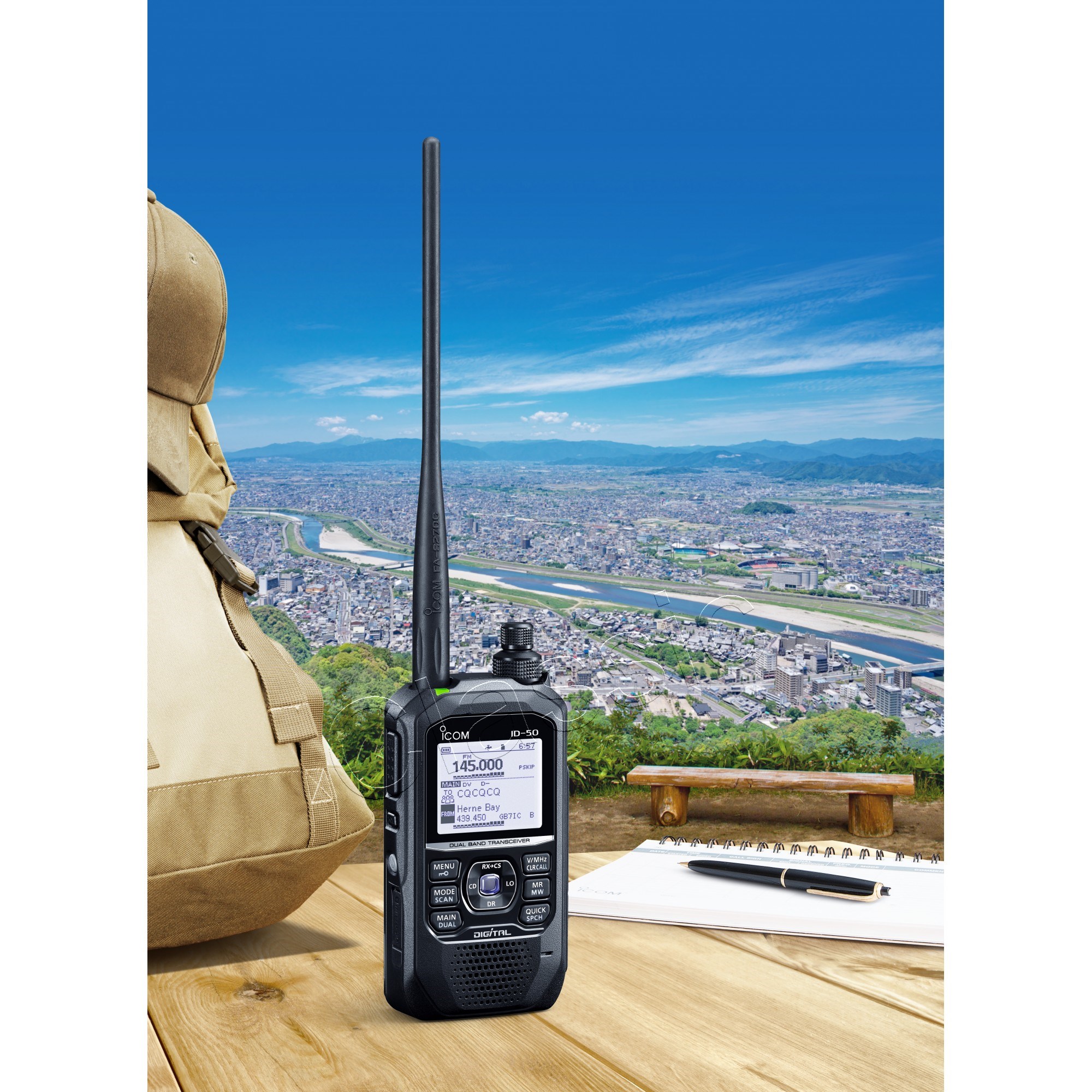 ICOM ID-50E 2 m/70 cm Dualband Amateurfunk Handfunkgerät mit D-Star, GPS Funktion und AM/FM Breitbandempfänger ist der kleine Bruder des ID-52E.