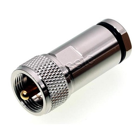 PL Lötstecker mit Zugentlastung für ø 7 mm Koaxkabel.