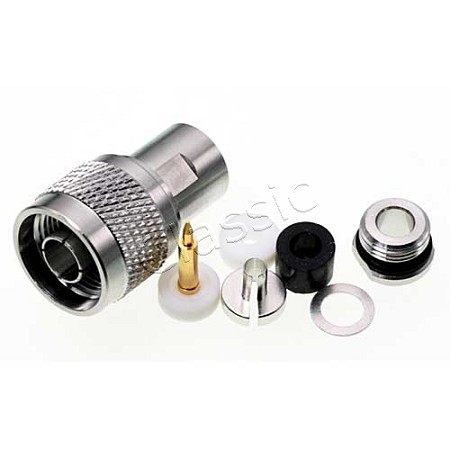 N soldeerconnector teflon male voor RG 58 coaxkabel.
